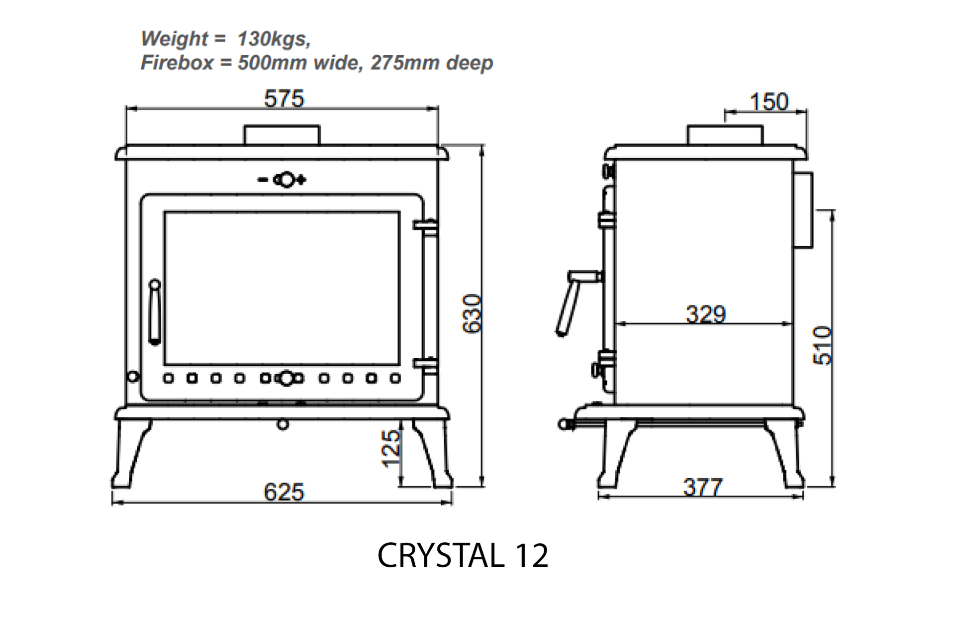Firebox: 500mm wide, 275mm deep