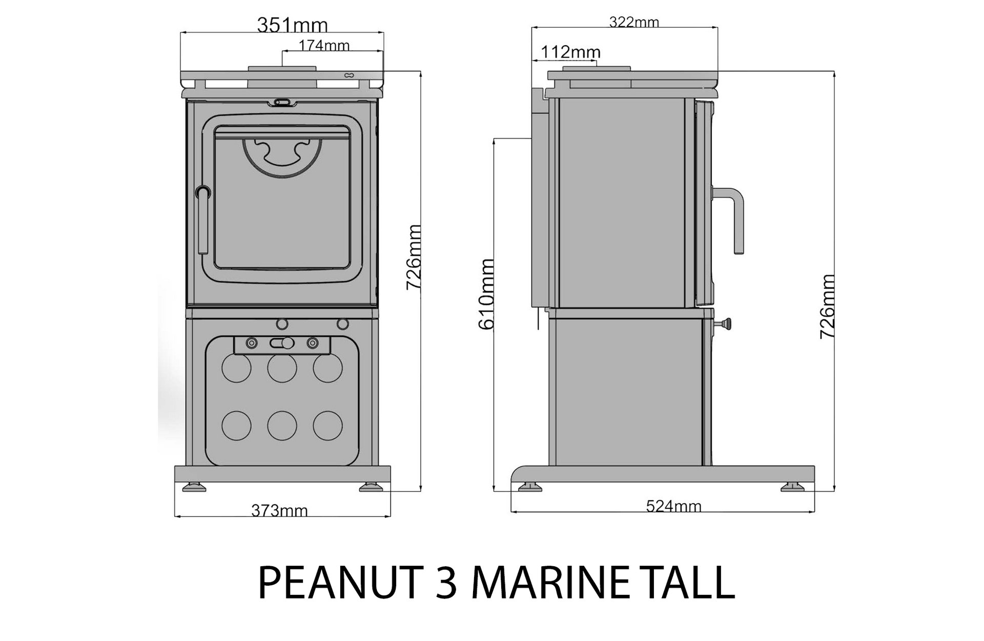 The boat-specific version named ‘Peanut Marine’, with incorporated cook-top plate, fiddle rail and it’s compact marine tray, making it the perfect package for boat installations and much easier to comply with BS 8511:2010. (also available in a tall option)
