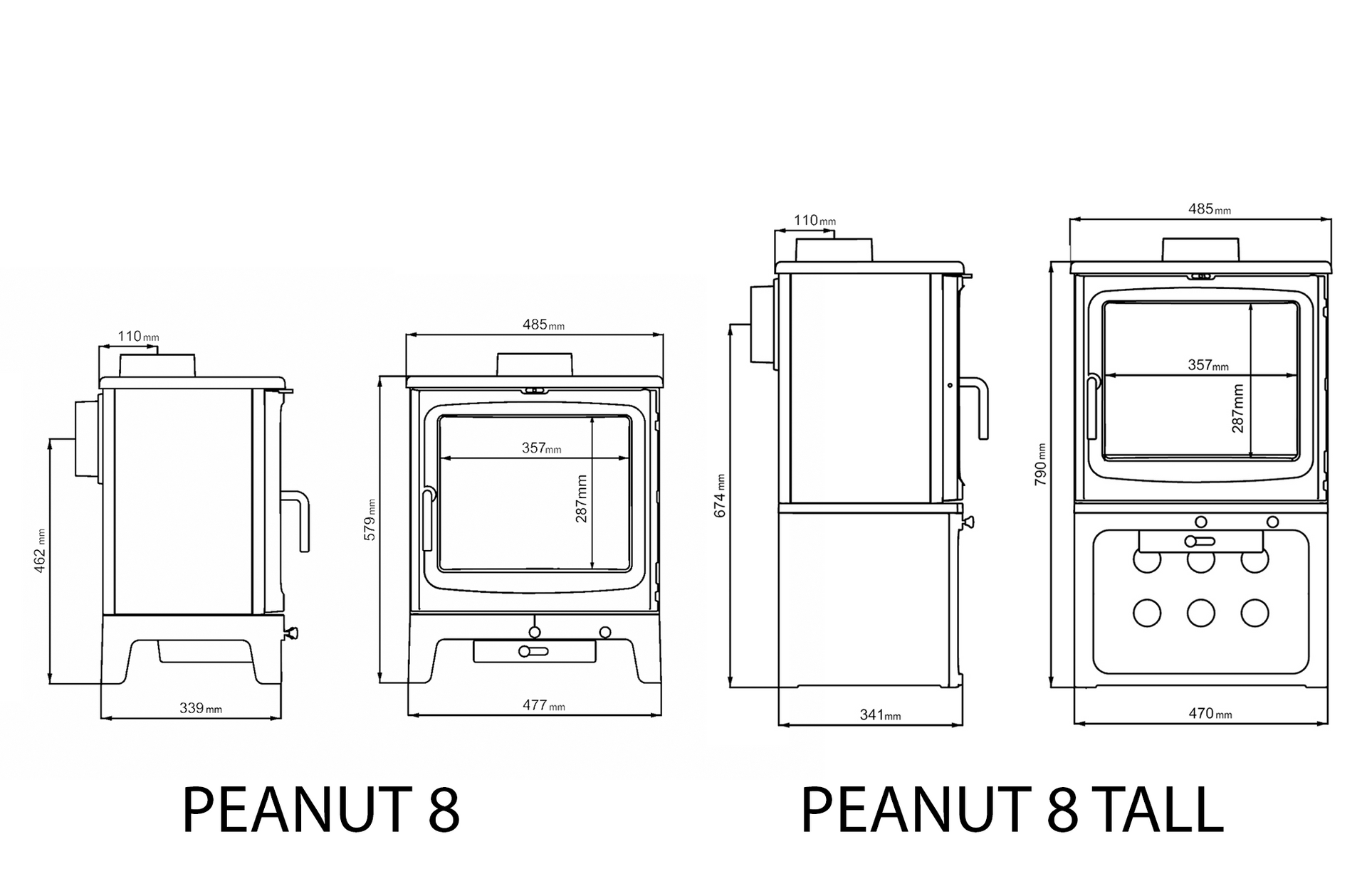 The Peanut range features all-cast-iron construction for maximum heat-retention and ultra-clean-burning, by keeping the belly of the fire hot even during ‘low & slow’ burning. Cast Iron construction also makes for an extremely rugged stove with long life.
