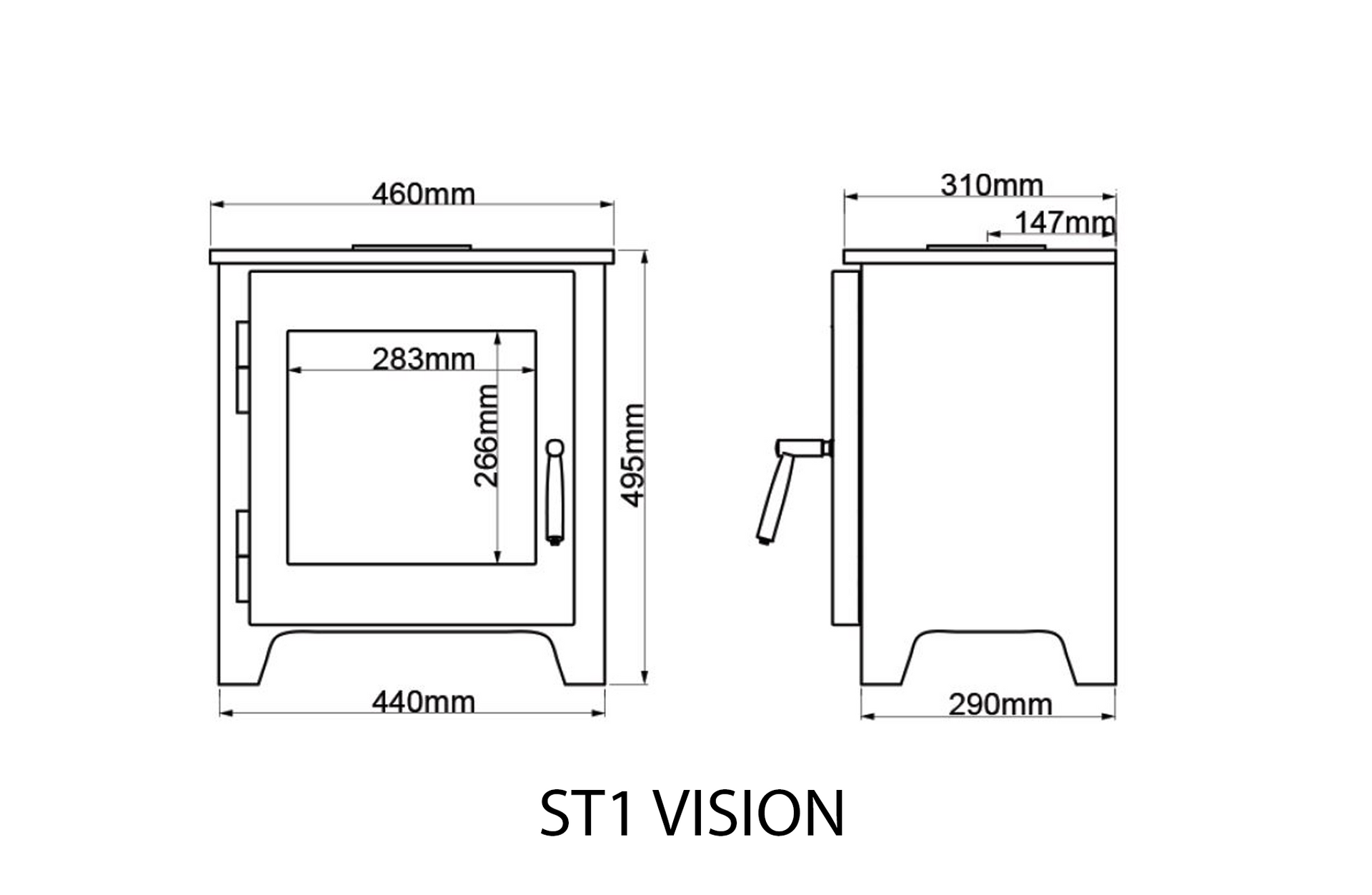 This is the larger door/widow version of the original ST1 model. (while the stove dimensions and specification are the same, the larger window gives the best view of the fire).