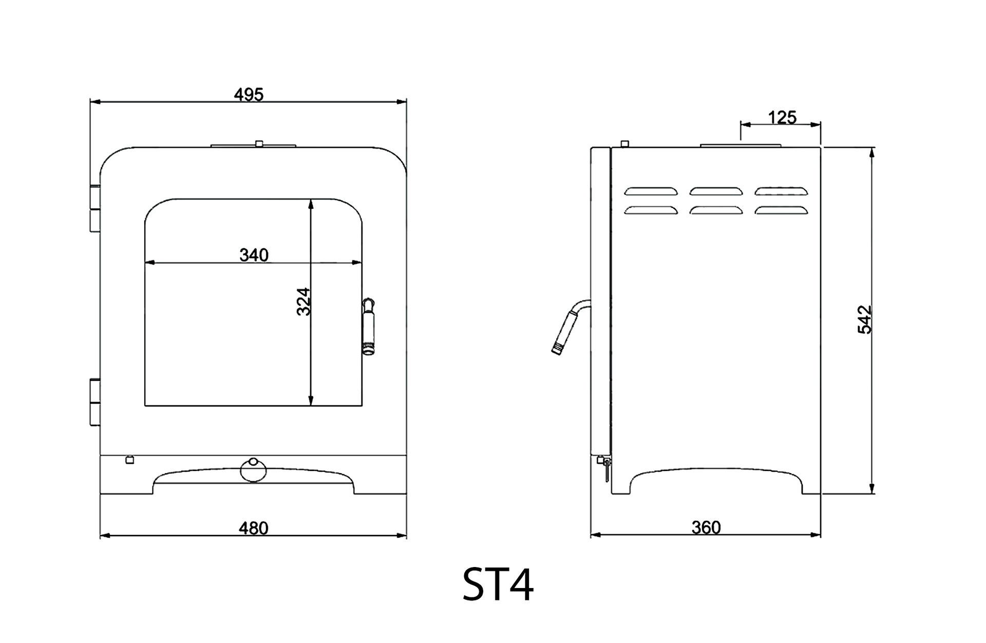 The ST4 has a 5"(125mm) diameter top flue outlet (there is no rear flue exit). Can be used with 5" diameter flue liner or twinwall flue.